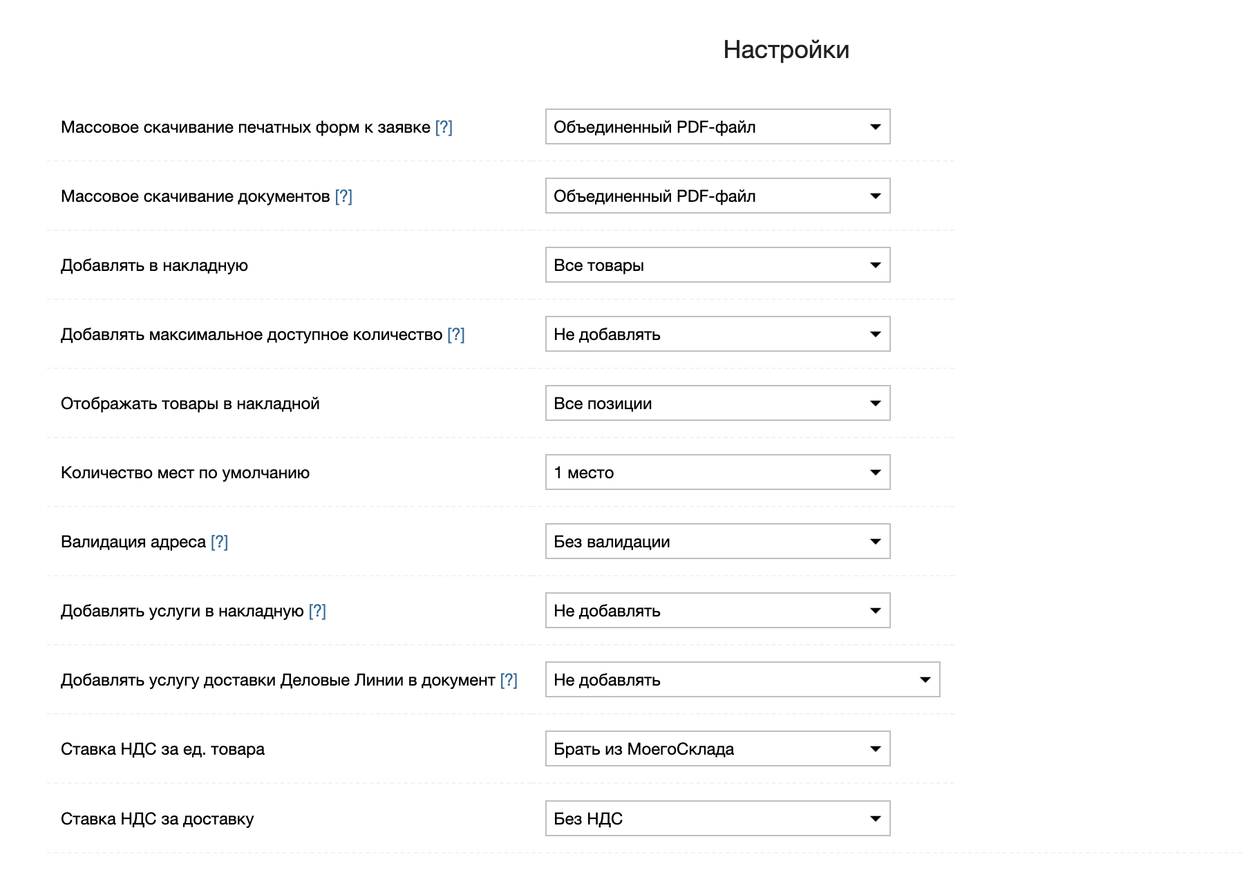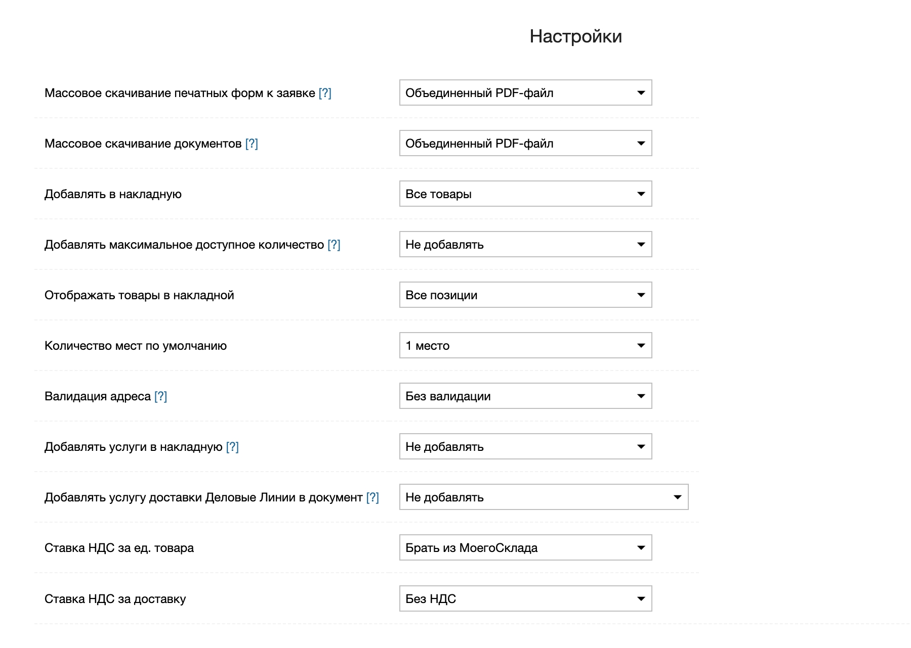 Опция позволяет выбрать необходимую ставку НДС для доставки Деловыми Линиями. Данная сумма НДС учитывается в доп. сборе за доставку в накладной ДЛ при включенном сборе за доставку и наложенном платеже.