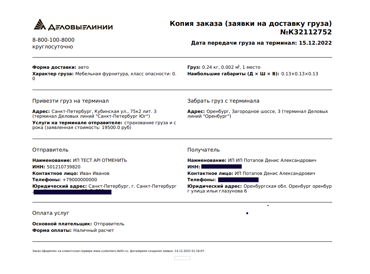 Ставка НДС за доставку Деловыми Линиями