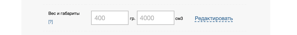 Этой опцией вы можете изменить количество мест в накладной, например когда по 1 заказу вы отправляете 2 коробки. При нажатии на Редактировать, вы можете указать габариты и вес мест: