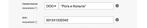 Поле ИНН получателя обязательно для заполнения, если получатель является юр.лицом. По клику на иконку ⬇️разворачивается дополнительное меню с возможностью выбрать откуда приложение получает данные ИНН.
