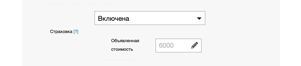Опция позволяет включить страхование груза и указать объявленную стоимость. Подробнее про страхование груза в Деловых Линиях.